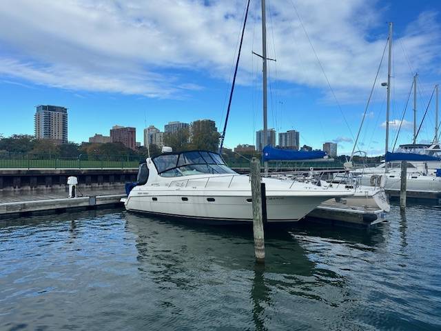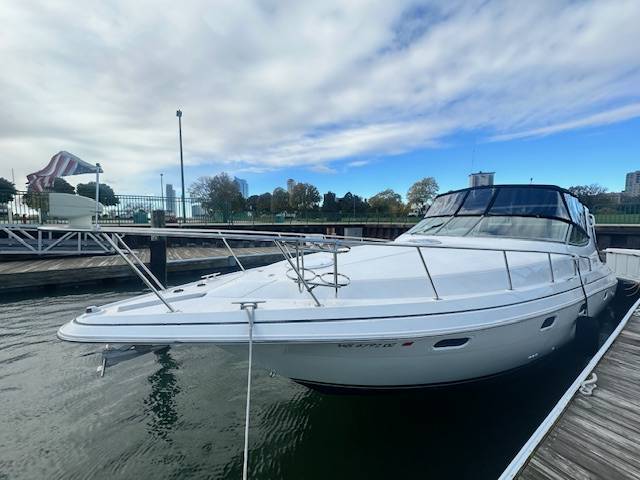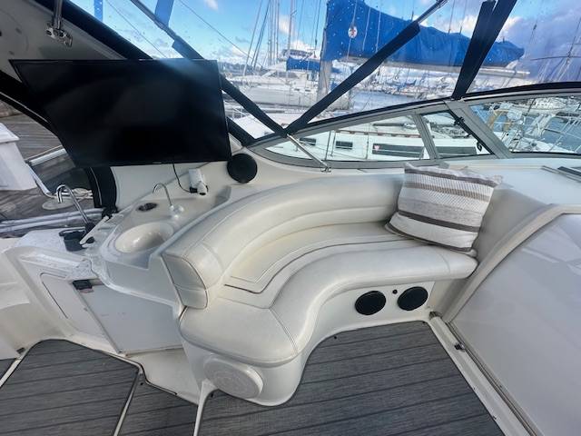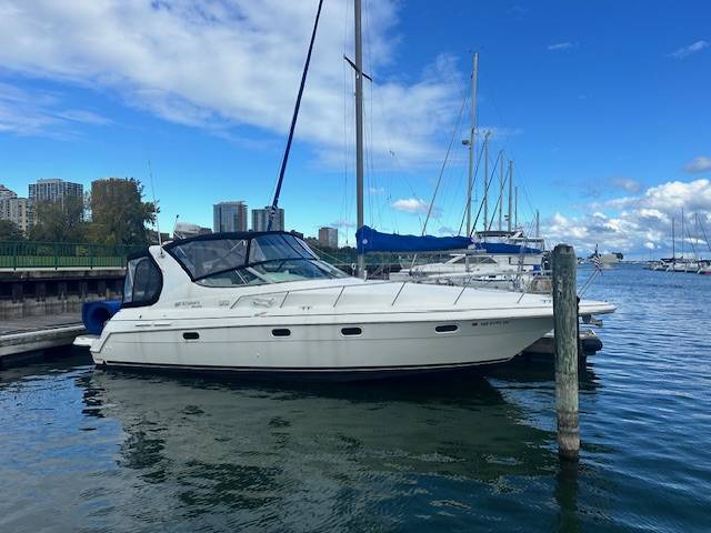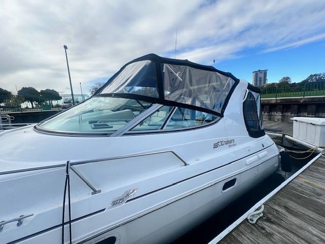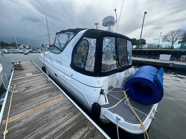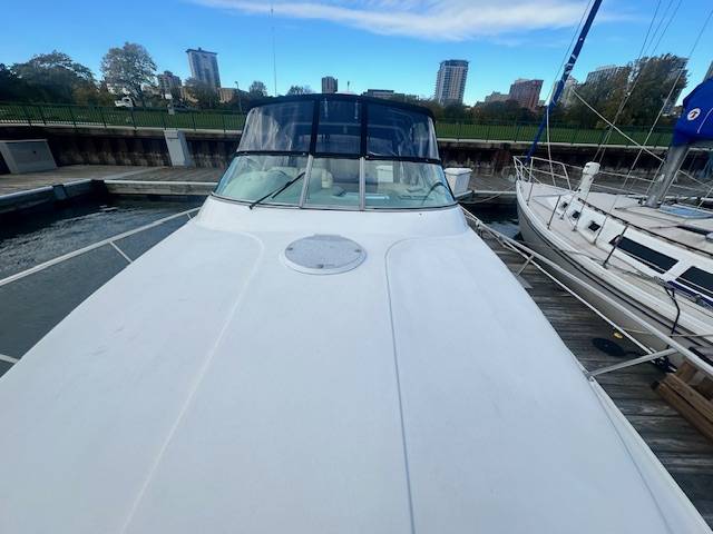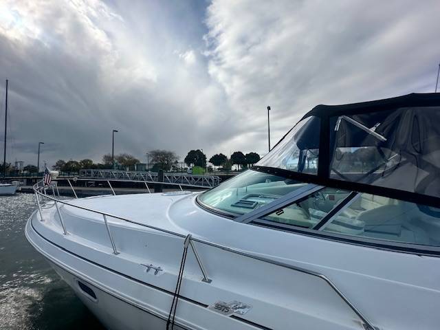 V Drive freshwater 3375 now available! Powered by twin Mercruiser 454's with less than 1200 hours. Nicely upgraded electronics such as a Garmin Radar with Touchscreen MFD, Garmin Autopilot and a Simrad VHF. She has also been fitted with an extended swim platform and seadeck/woven seagrass flooring in and around the cockpit and swim deck. A survey from 2022 is available upon request. She is not equipped with a generator. A slip in Milwaukee for the 2025 season is also included at McKinley Marina. Contact for more information or to set up an appointment to see this vessel in person!