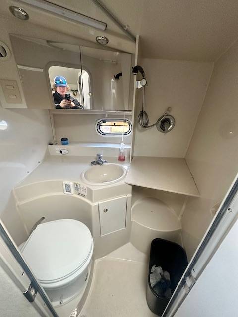Accommodations: Roomy mid cabin, dinette that converts to a double berth, forward double berth, guest head